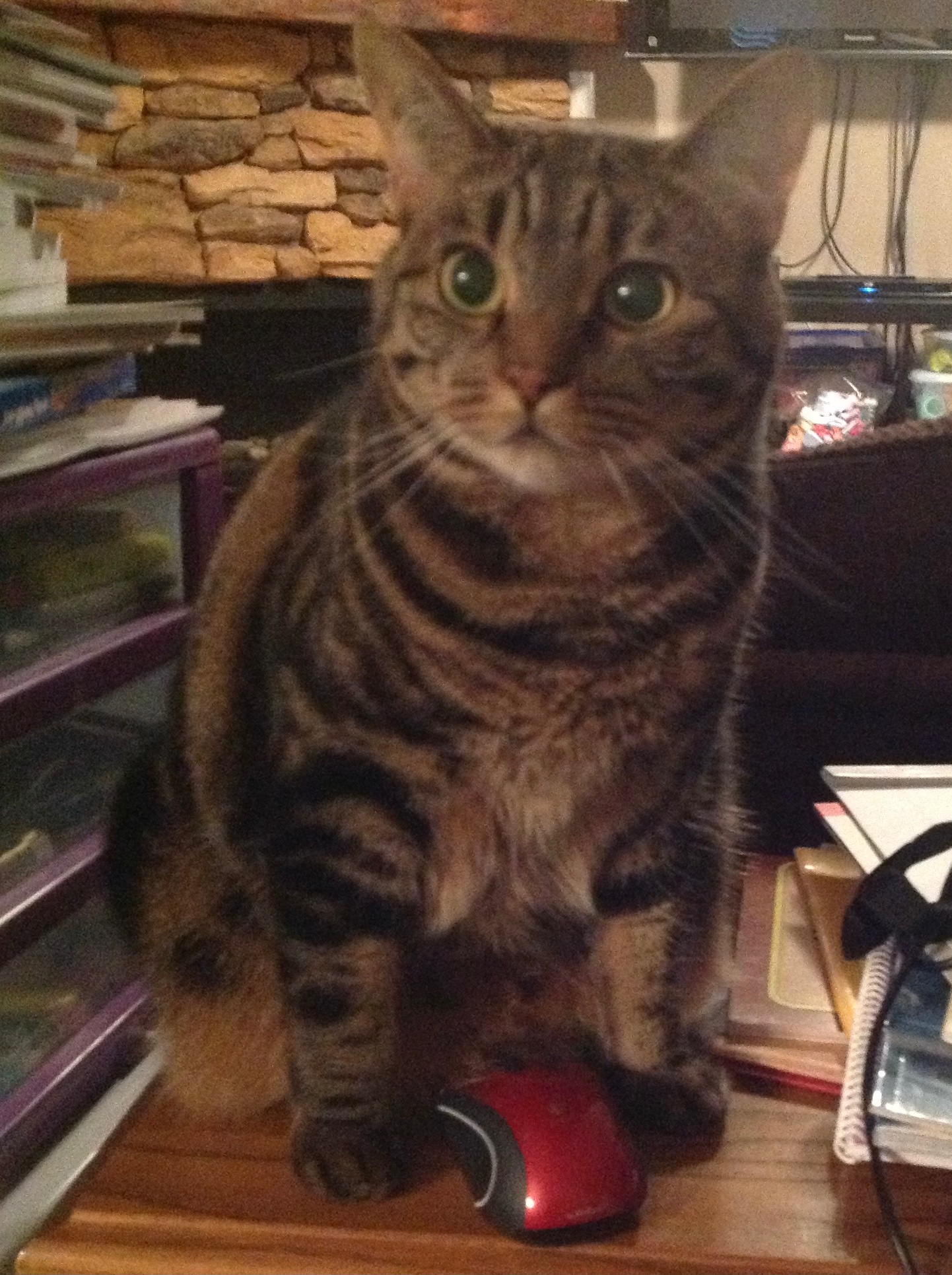 Since our house is on a mountain, there are many wild critters that come to visit during the day and night. Songbirds, raptors, raccoons, squirrels, opossums, deer, a timid bobcat and even an occasional bear and cougar have been known to enjoy the stream and forest behind our house.